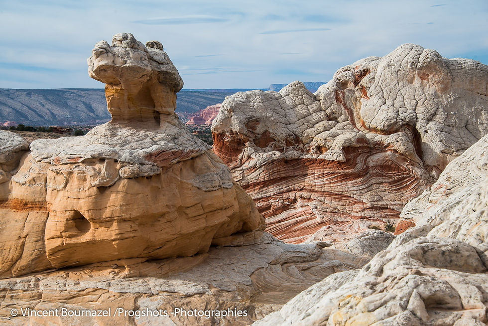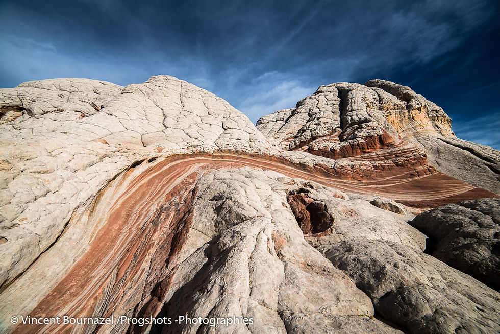 Sept ans après, retour à White Pocket, l'une des zones les plus extravagantes géologiquement probablement au monde, que j'ai eu la chance de parcourir. Cette fois ci sans Outfitter, et avec un excellent 4x4 permettant d'atteindre la zone sans problème malgré la piste difficile, permettant ainsi d'y bivouaquer pour des inoubliables coucher et lever de soleil. Les pluies des jours précédents nous laissant l'immense chance de bénéficier du rare privilège des reflets dans les pools restantes de ces sidérantes roches torturées.